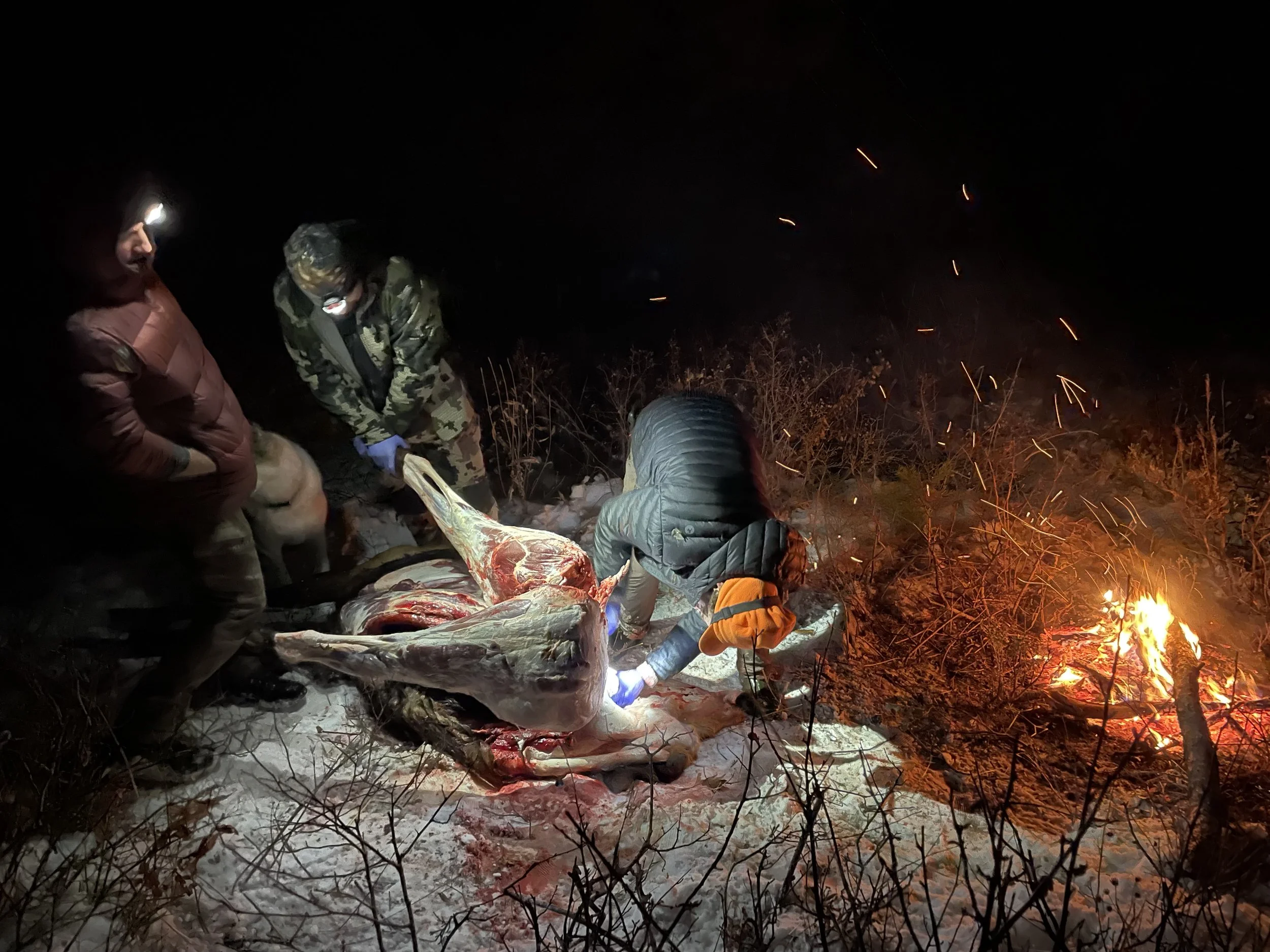 Field dressing - We cannot stitch together a hacked up piece of meat. Shot placement and quality of in-field butchery will affect the quantity of edible meat. Respect the animal and maximize its yield by keeping it clean, quartering carefully, and only quartering when necessary. We are not responsible for low yields due to haste in-field.